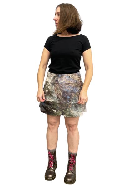 I have purchased five of these skirts over the past 20 years… They are staple in my wardrobe, and they really stand the test of time. They’re extremely well-made and sit on my hips perfectly I’m 55 and and 170 pounds. The medium fits me perfectly. The color is rich in the fabric feels so organic. The small pocket in the front acts like a fanny pack. It came with a beautiful note. The customer service is so personal and I really appreciate, the small business for his consistency and it’s mission.