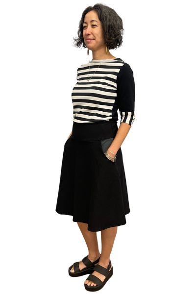An easy way to add asymmetrical fun to a basic look and great to pair with some simple accessories! The Circus Tee has been hand crafted with love and made to last. This ultra flattering fit is cut with half sleeves to leave your hands free without constant cuffing.