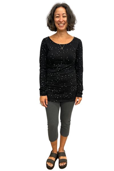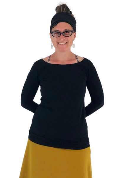 Super flattering, extra comfortable, and stylishly simple, this long sleeve version of the classic Simple Tee is easy to dress up or down. Patterned with extra long sleeves for a ruched look or to bring down around your hands and keep them cozy. No more cold fingers or frigid air slipping through that gap between your bottoms and tops- there's fabric to spare! This wardrobe staple is fitted through the waist but cut with extra room for curvy hips, making it great for layering over dresses as well as under them. The Long Sleeve Simple Tee is a winter layer-lovers dream, fitting snugly under jackets but roomy enough to wear over a cami so you can strip down if things get too steamy indoors. Made from our soft breathable organic cotton, this is a top you'll want to wear every day- and no one could blame you!