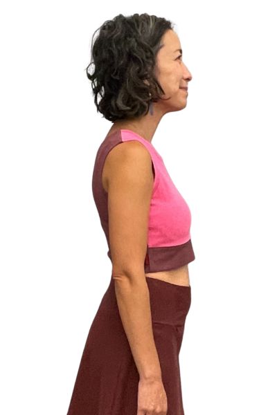 Size down in the hemp and organic cotton crop top tank to wear tighter, as a bra.